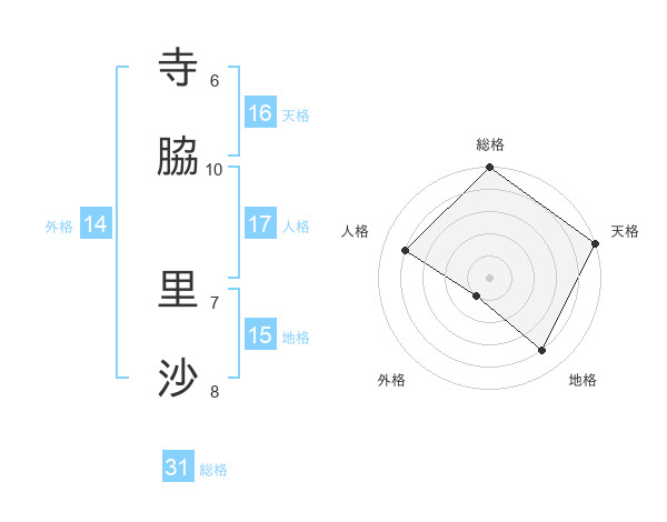 寺脇 里沙さんの天格は16画の5点!