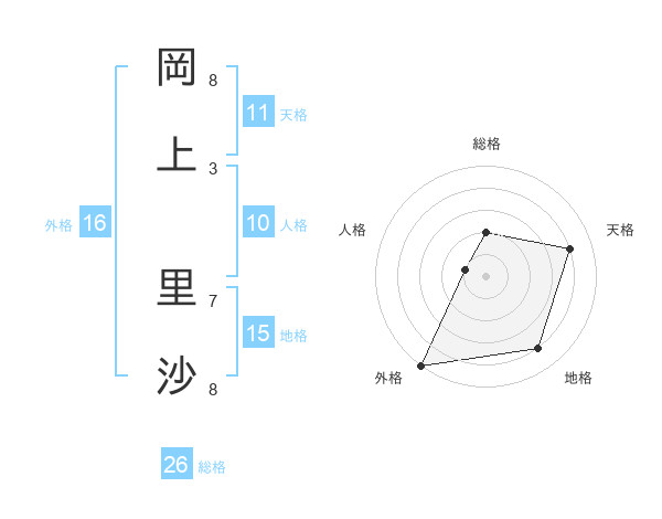 岡上 里沙さんを姓名の画数から五運を鑑定