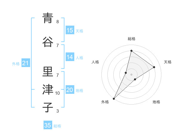 青谷 里津子さんを姓名の画数から五運を鑑定