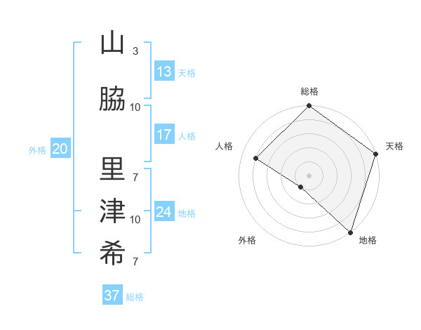 山脇 里津希さんを姓名の画数から五運を鑑定