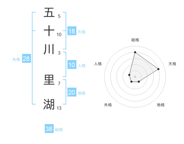 五十川 里湖さんを姓名の画数から五運を鑑定