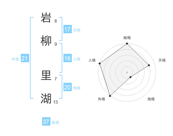 岩柳 里湖さんを姓名の画数から五運を鑑定