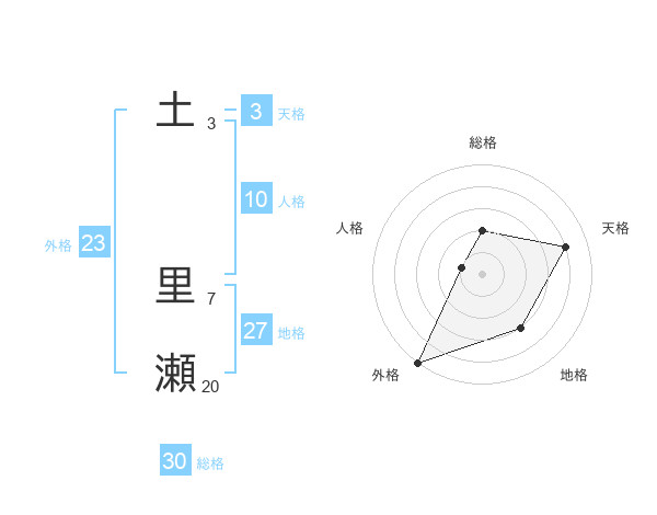 土 里瀬さんの総格は30画の2点!