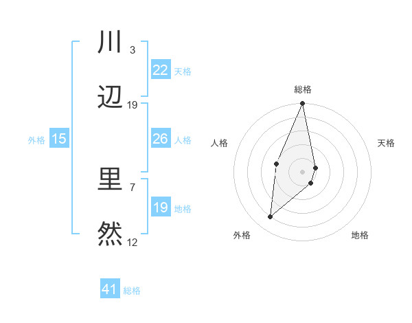 川辺 里然さんの天格は22画の1点!