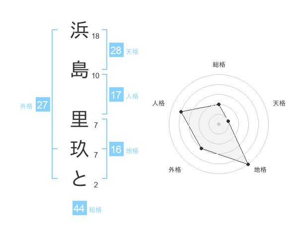 浜島 里玖とさんを姓名の画数から五運を鑑定