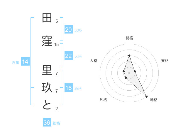 田窪 里玖とさんの天格は20画の1点!