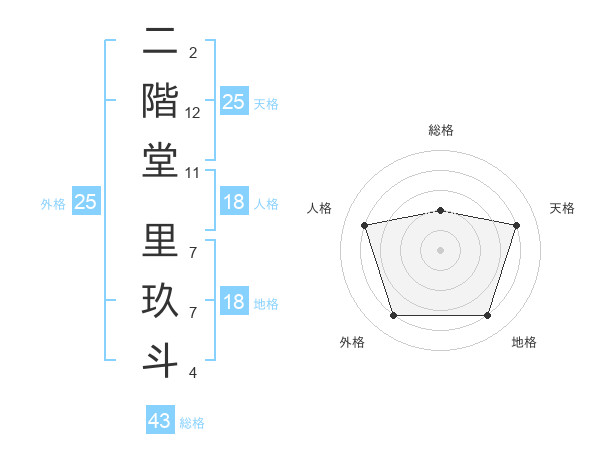 二階堂 里玖斗さんの総格は43画の2点