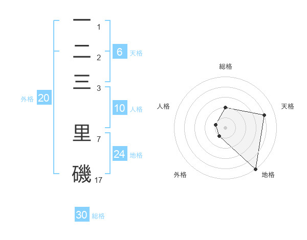 一二三 里磯さんを姓名の画数から五運を鑑定