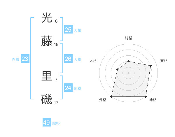 光藤 里磯さんを姓名の画数から五運を鑑定