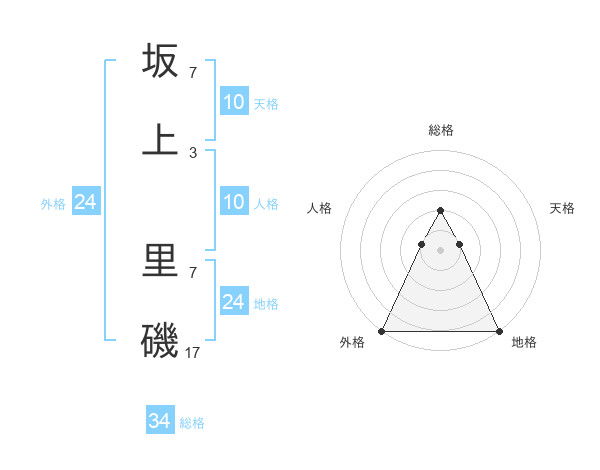 坂上 里磯さんの総格は34画の2点!
