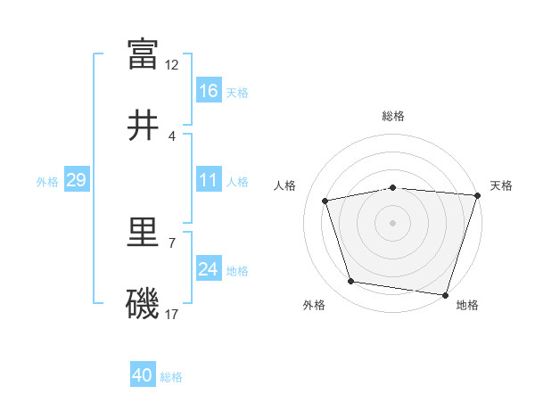 富井 里磯さんの地格は24画の5点!