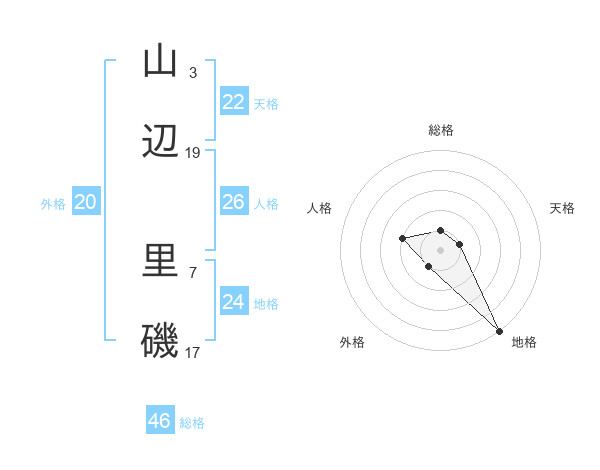 山辺 里磯さんを姓名の画数から五運を鑑定