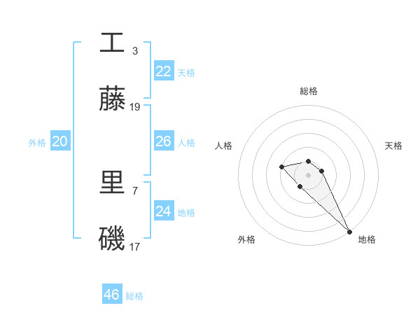 工藤 里磯さんの総格は46画の1点!
