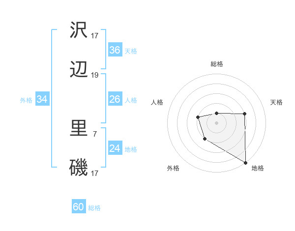 沢辺 里磯さんを姓名の画数から五運を鑑定