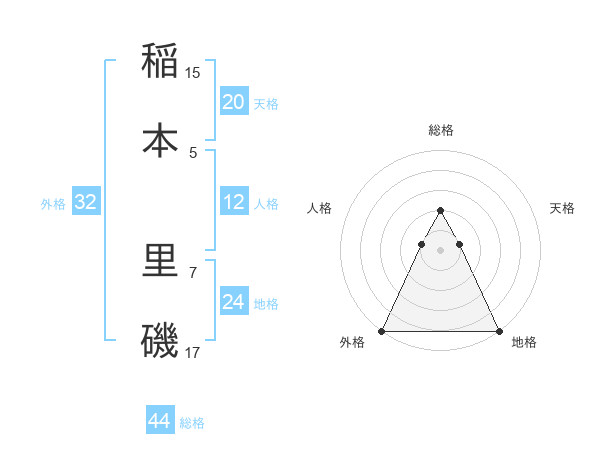 稲本 里磯さんの外格は32画の5点!