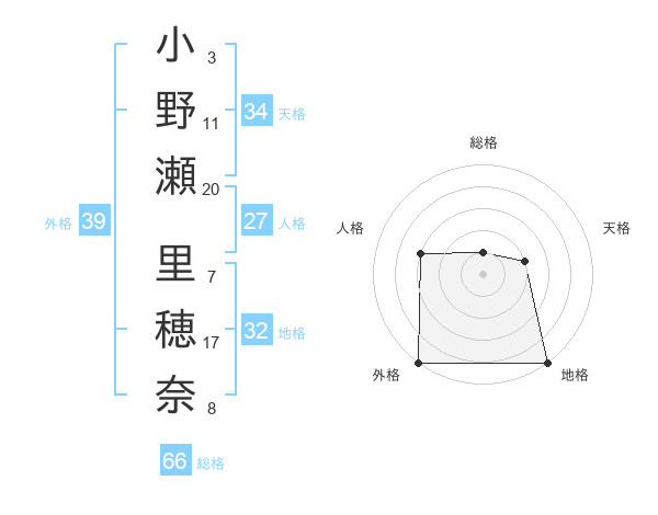 小野瀬 里穂奈さんを姓名の画数から五運を鑑定