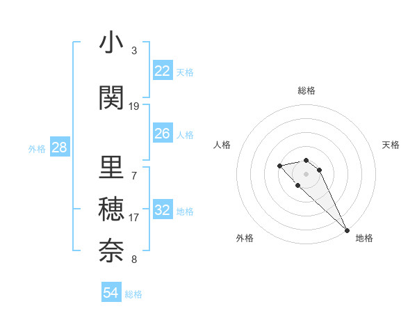 小関 里穂奈さんの地格は32画の5点