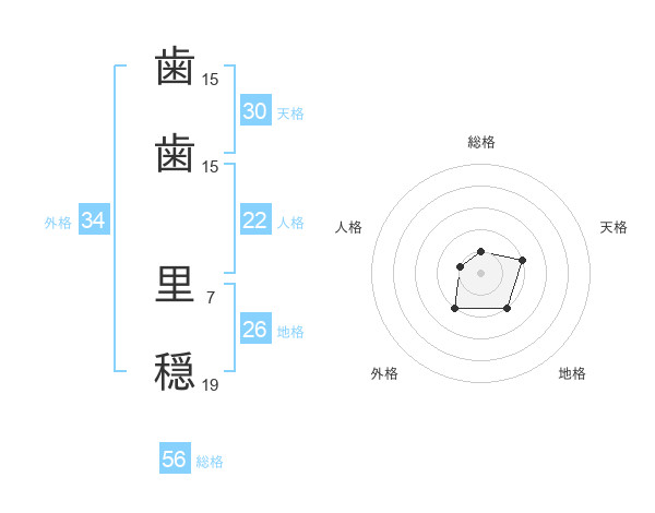 歯歯 里穏さんの外格は34画の2点!