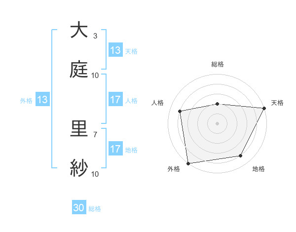 大庭 里紗さんを姓名の画数から五運を鑑定