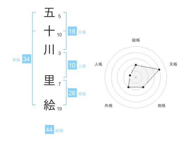 五十川 里絵さんを姓名の画数から五運を鑑定