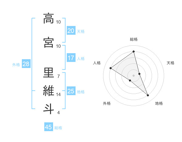 高宮 里維斗さんを姓名の画数から五運を鑑定