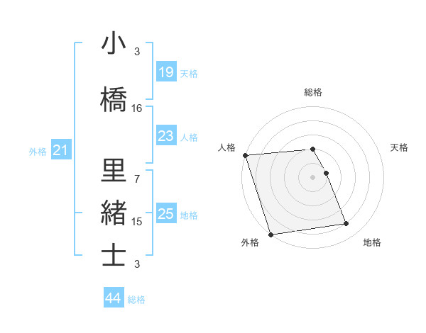 小橋 里緒士さんを姓名の画数から五運を鑑定