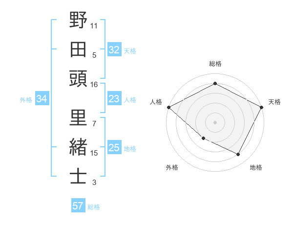 野田頭 里緒士さんを姓名の画数から五運を鑑定