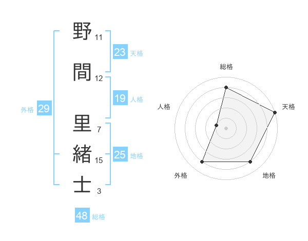 野間 里緒士さんの天格は23画の5点!