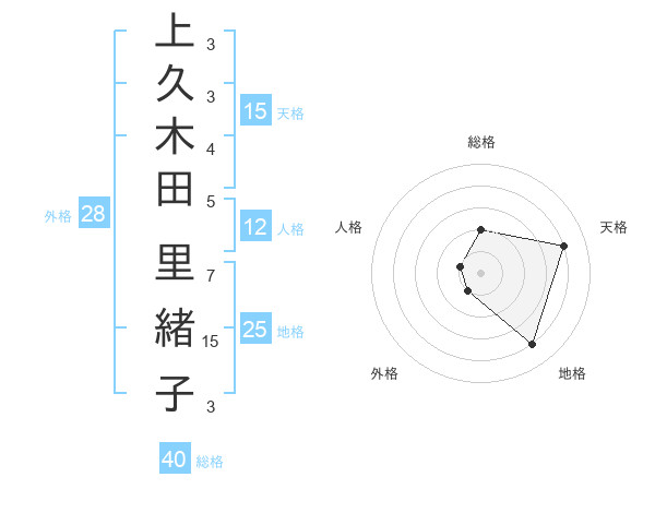 上久木田 里緒子さんの総格は40画の2点