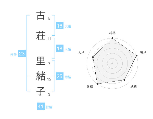 古荘 里緒子さんの総格は41画の5点!