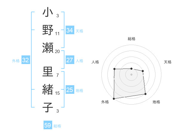 小野瀬 里緒子さんの外格は32画の5点!