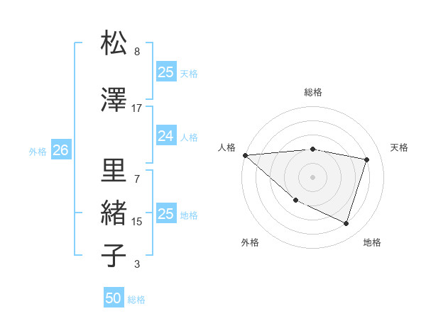 松澤 里緒子さんを姓名の画数から五運を鑑定