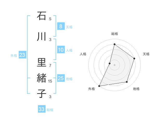 石川 里緒子さんの外格は23画の5点