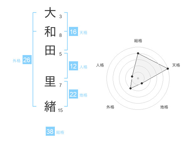 大和田 里緖さんを姓名の画数から五運を鑑定