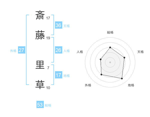 斎藤 里草さんを姓名の画数から五運を鑑定