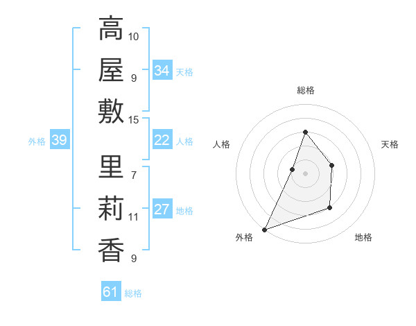 高屋敷 里莉香さんの外格は39画の5点!