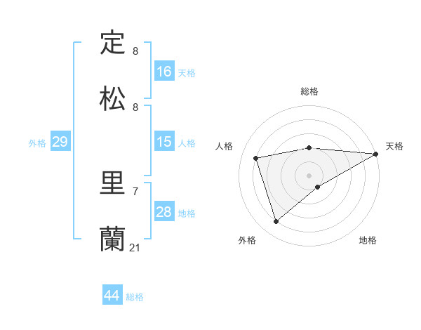定松 里蘭さんの天格は16画の5点!
