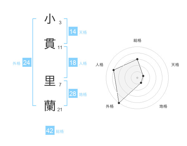 小貫 里蘭さんを姓名の画数から五運を鑑定