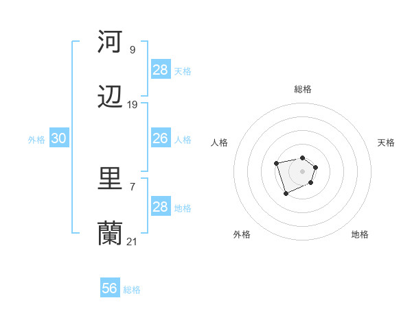 河辺 里蘭さんを姓名の画数から五運を鑑定