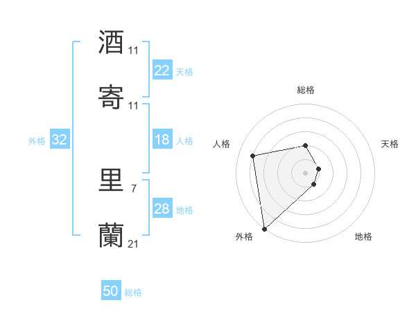 酒寄 里蘭さんの天格は22画の1点!