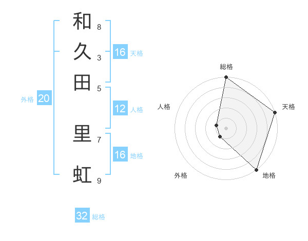 和久田 里虹さんを姓名の画数から五運を鑑定