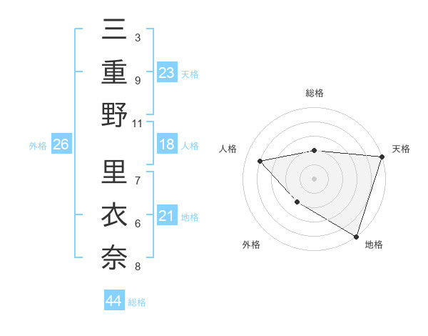 三重野 里衣奈さんを姓名の画数から五運を鑑定