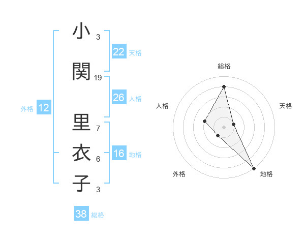 小関 里衣子さんを姓名の画数から五運を鑑定
