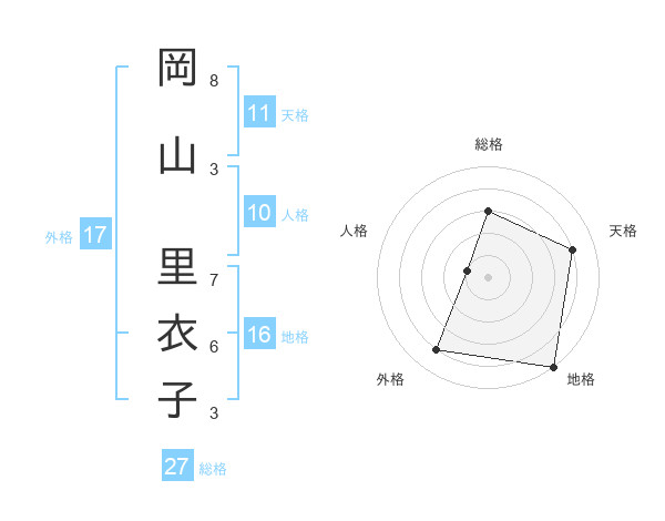 岡山 里衣子さんを姓名の画数から五運を鑑定
