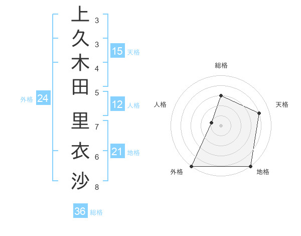 上久木田 里衣沙さんを姓名の画数から五運を鑑定