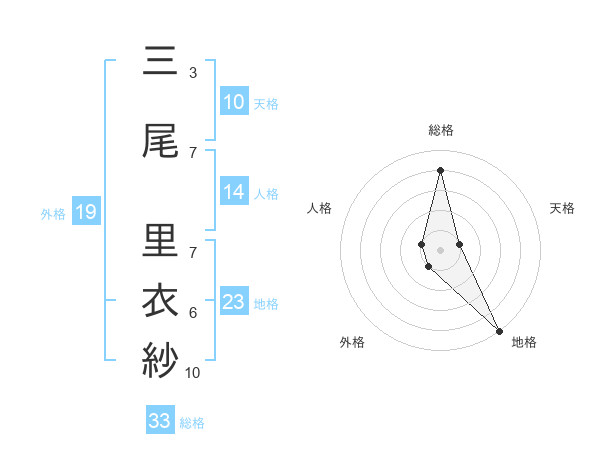 三尾 里衣紗さんの地格は23画の5点!