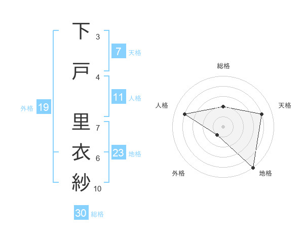 下戸 里衣紗さんを姓名の画数から五運を鑑定