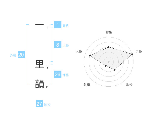 一 里韻さんの外格は20画の1点!