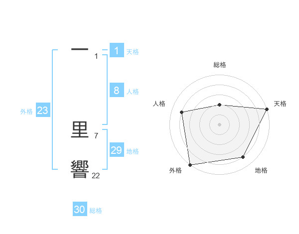 一 里響さんの総格は30画の2点