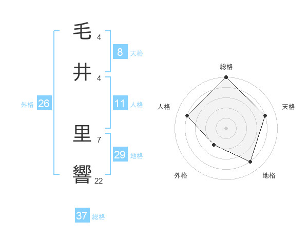 毛井 里響さんの総格は37画の5点!